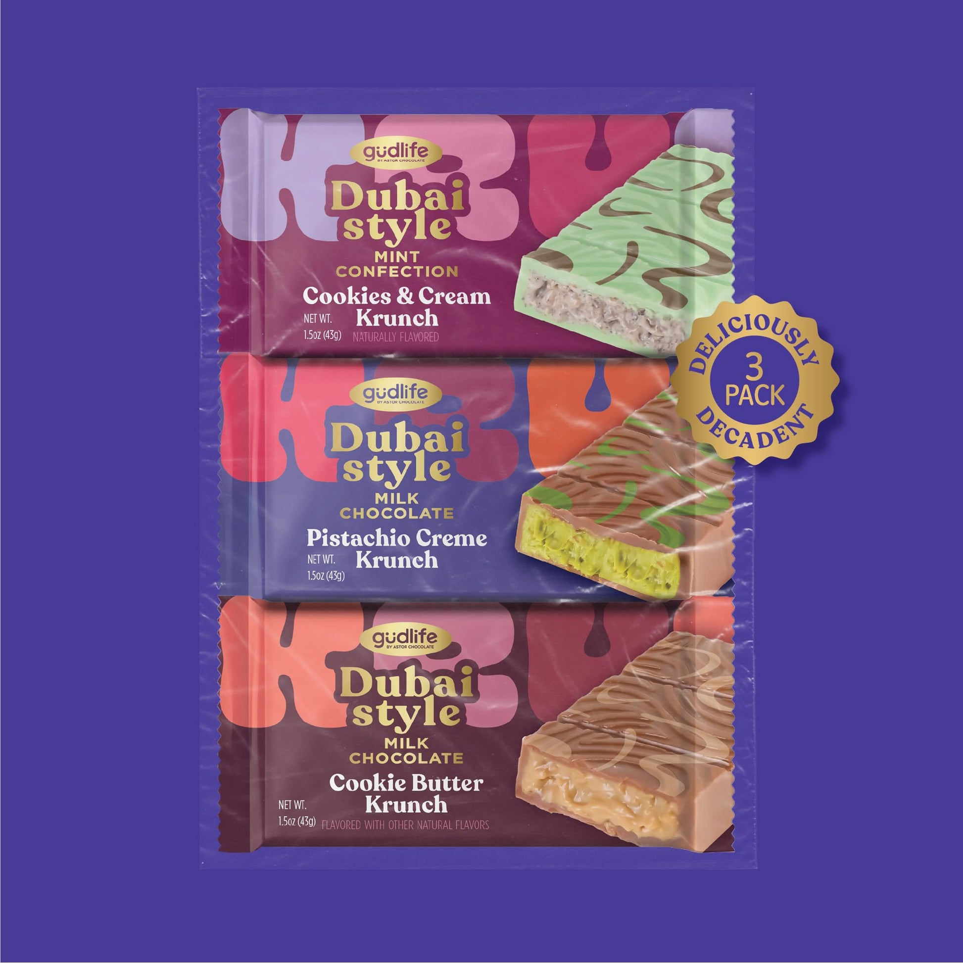 Each bar features the signature Dubai chocolate style - thick, premium chocolate generously filled with creamy centers and crunchy pieces that create an unforgettable taste sensation. Choose individual bars or the complete variety pack.